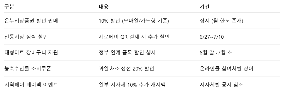 ✅ 혜택 ③ 대형 유통사 자체 할인 + 정부 연계 쿠폰