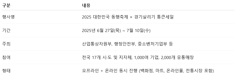 🎯 통큰세일 공식 홈페이지에서 참여 매장별 혜택 정리표 확인 가능
