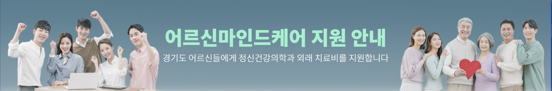 이러한 현실을 반영하듯, 최근 정신건강의학과를 찾는 노년층이 꾸준히 증가하고 있으며, 조기에 진단하고 치료받을 수 있도록 공공 차원의 지원 확대가 절실한 상황입니다. 경기도는 이러한 사회적 요구에 발맞춰, 65세 이상 경기도민 어르신들이 정신건강의학과에서 외래치료를 받을 경우 치료비의 일부를 지원하는 ‘어르신마인드케어’ 제도를 시행하고 있습니다.