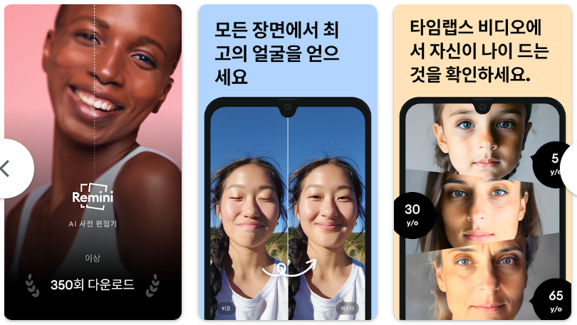 Remini는 흐릿하거나 저해상도인 사진을 AI 딥러닝 기술로 선명하게 복원해주는 앱이다.