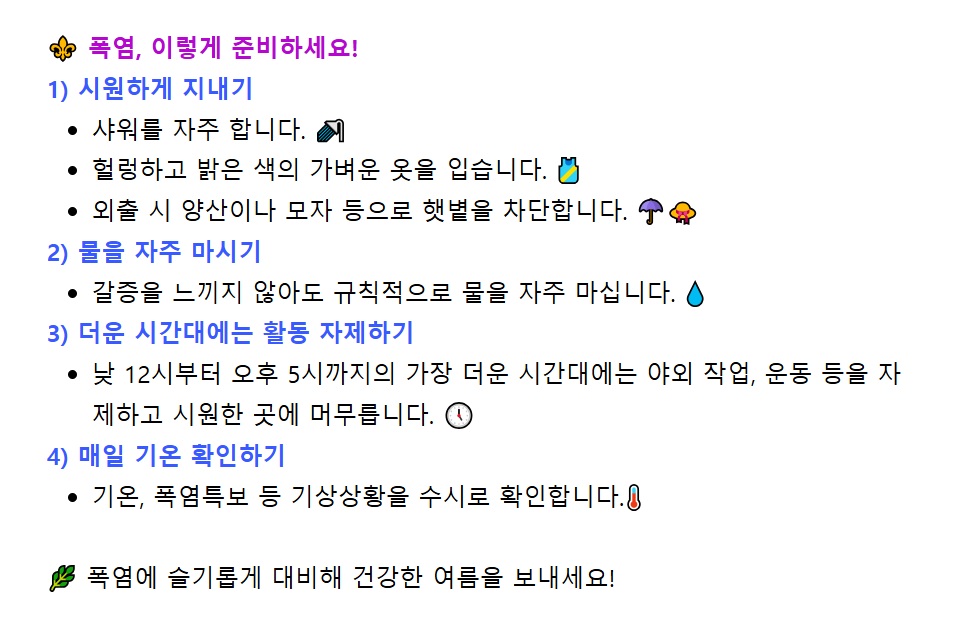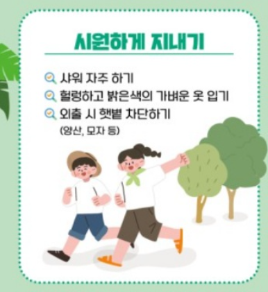 다가오는 남은 여름, 국민 모두가 생활 속 작은 실천을 통해 무더위를 이겨내고 건강한 일상을 지켜가기를 바랍니다.